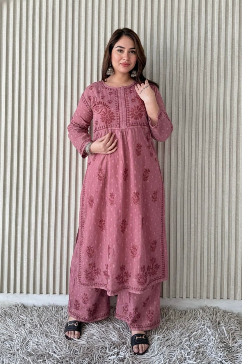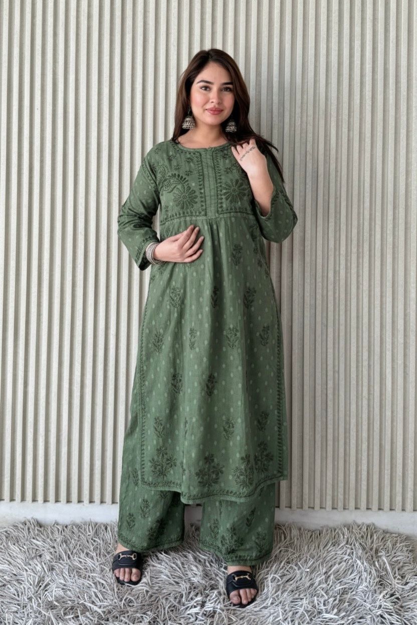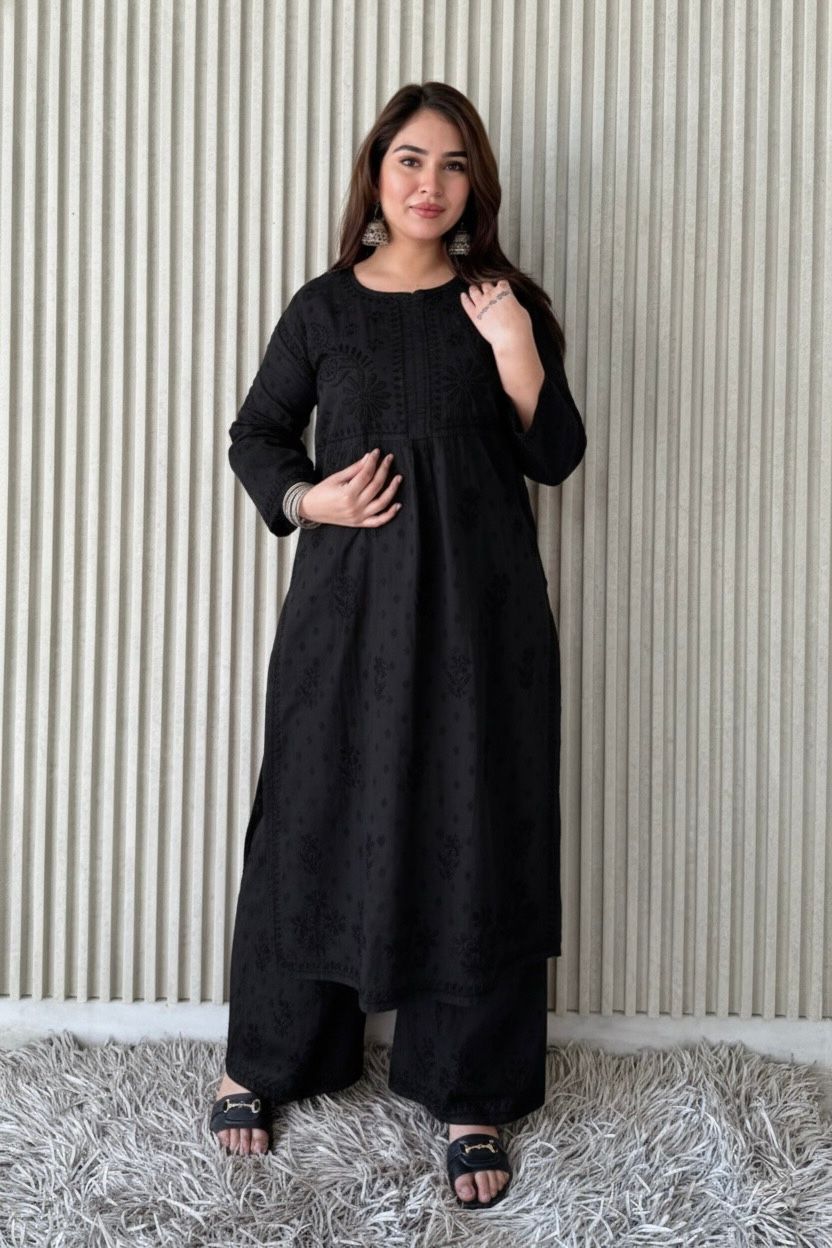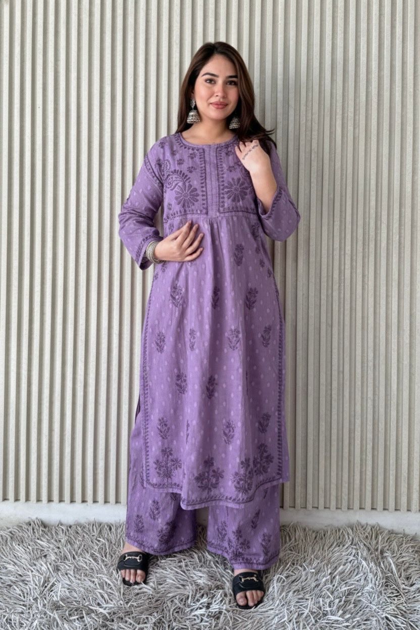 DolbyCotton A line Lucknowi Chikankari Plazzo Set