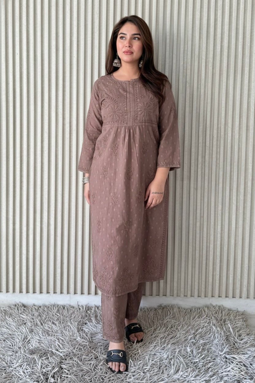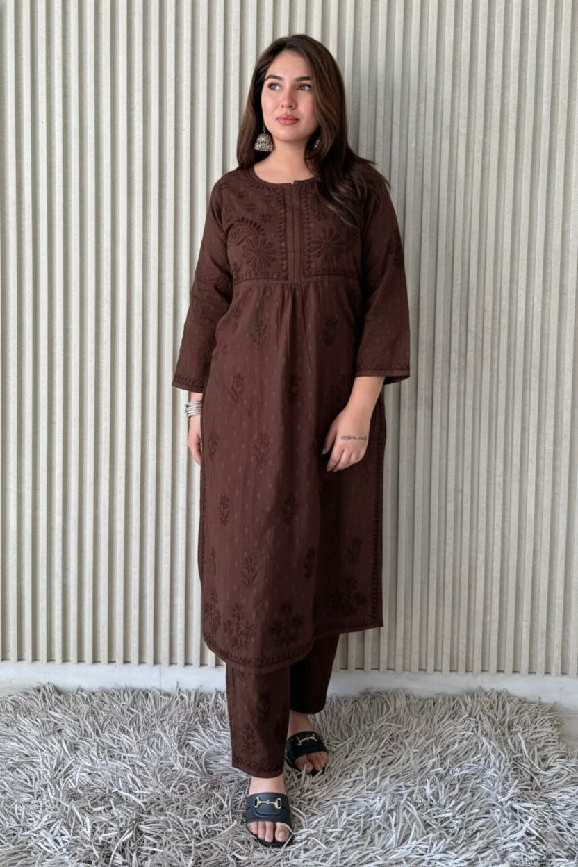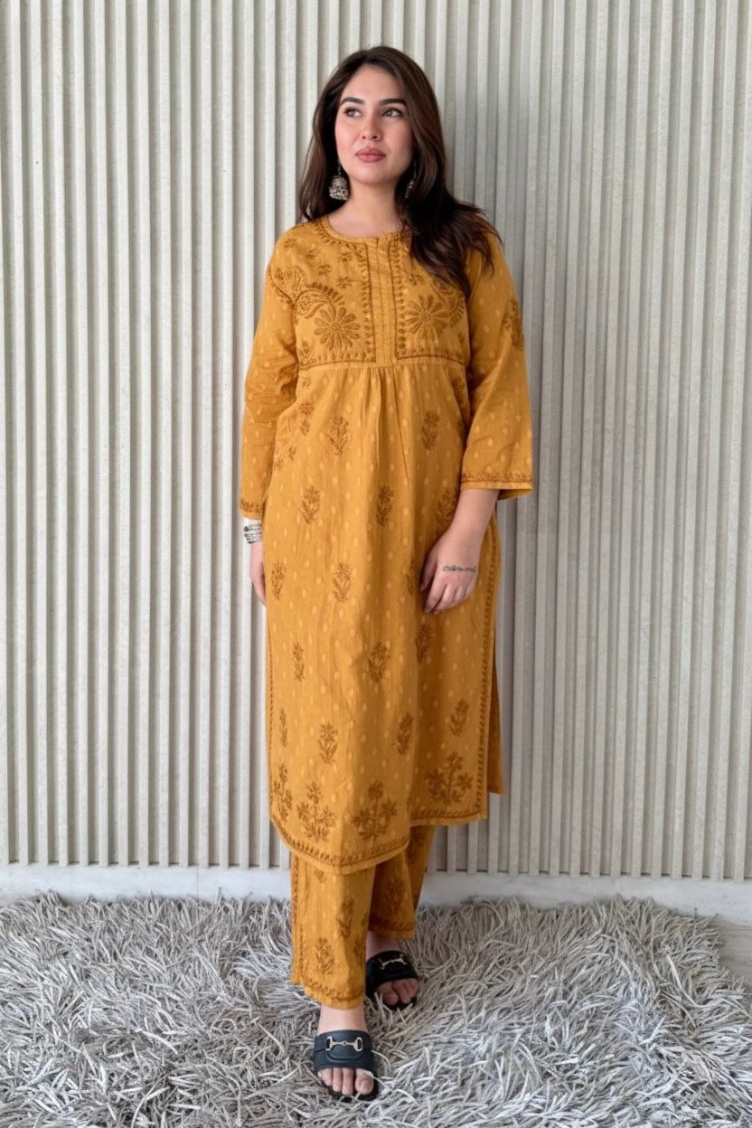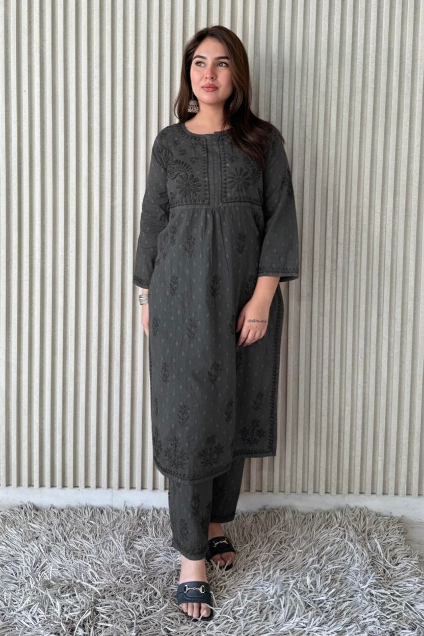 DolbyCotton A line Lucknowi Chikankari Plazzo Set