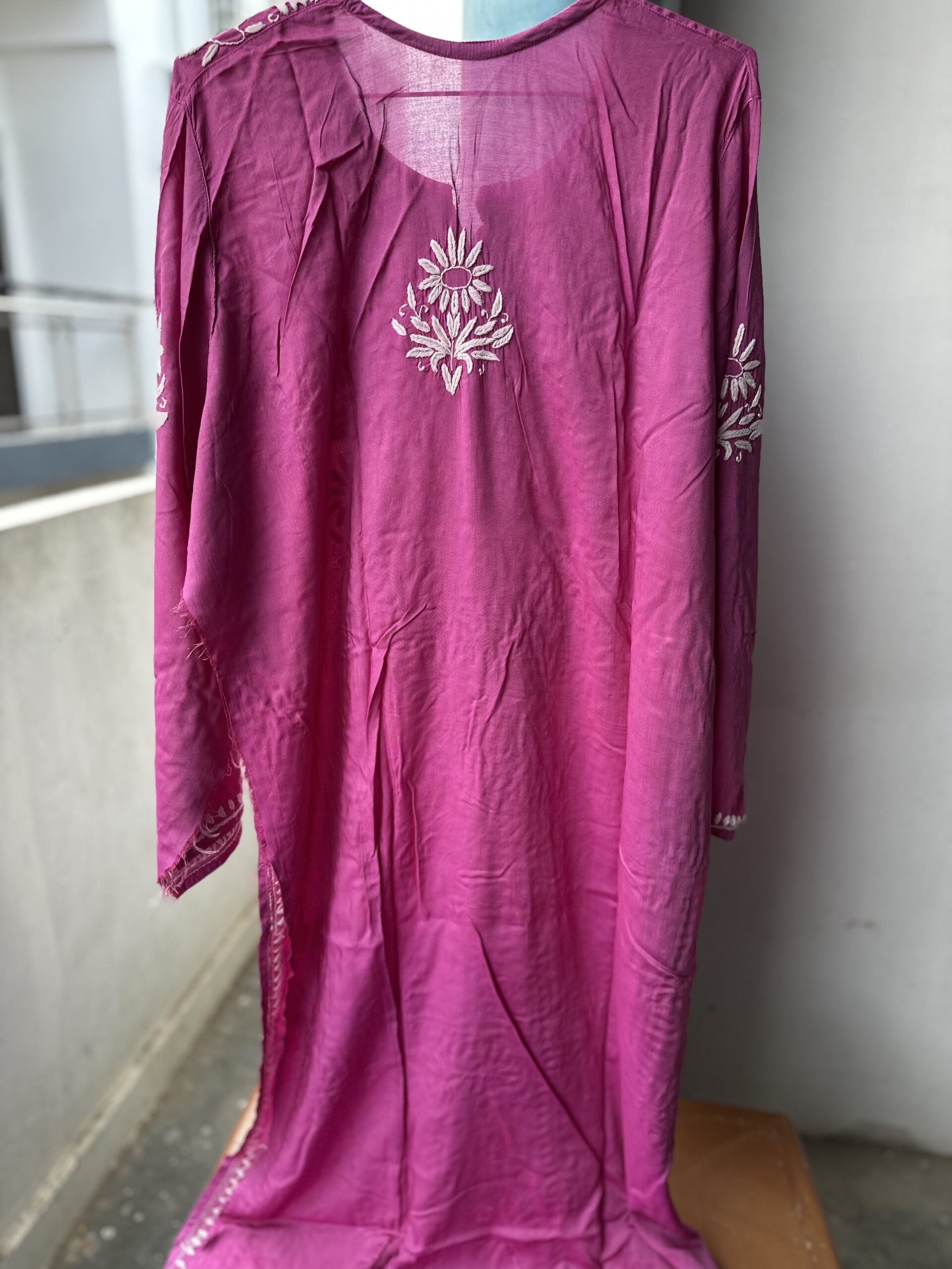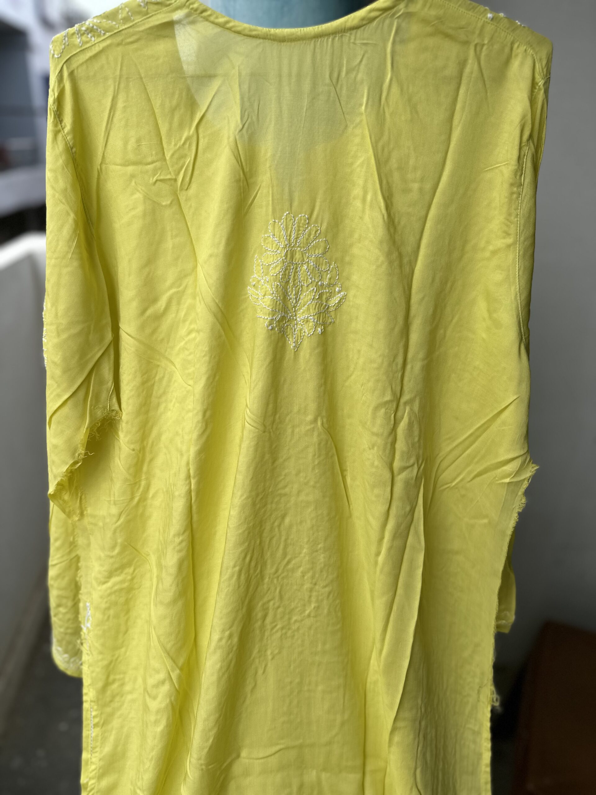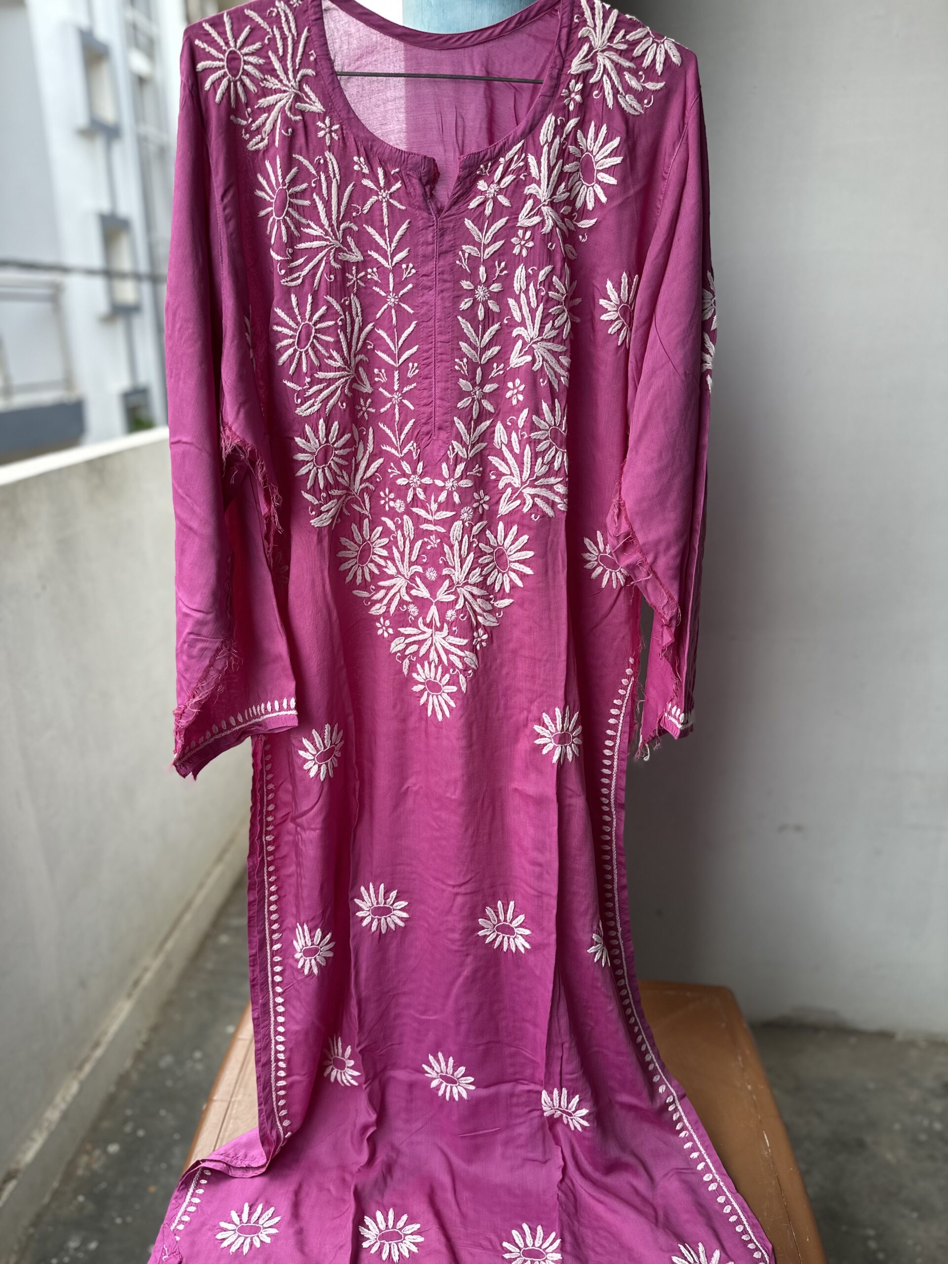 Modal Cotton Chikankari Kurti With 3D lucknowi chikankari on it .