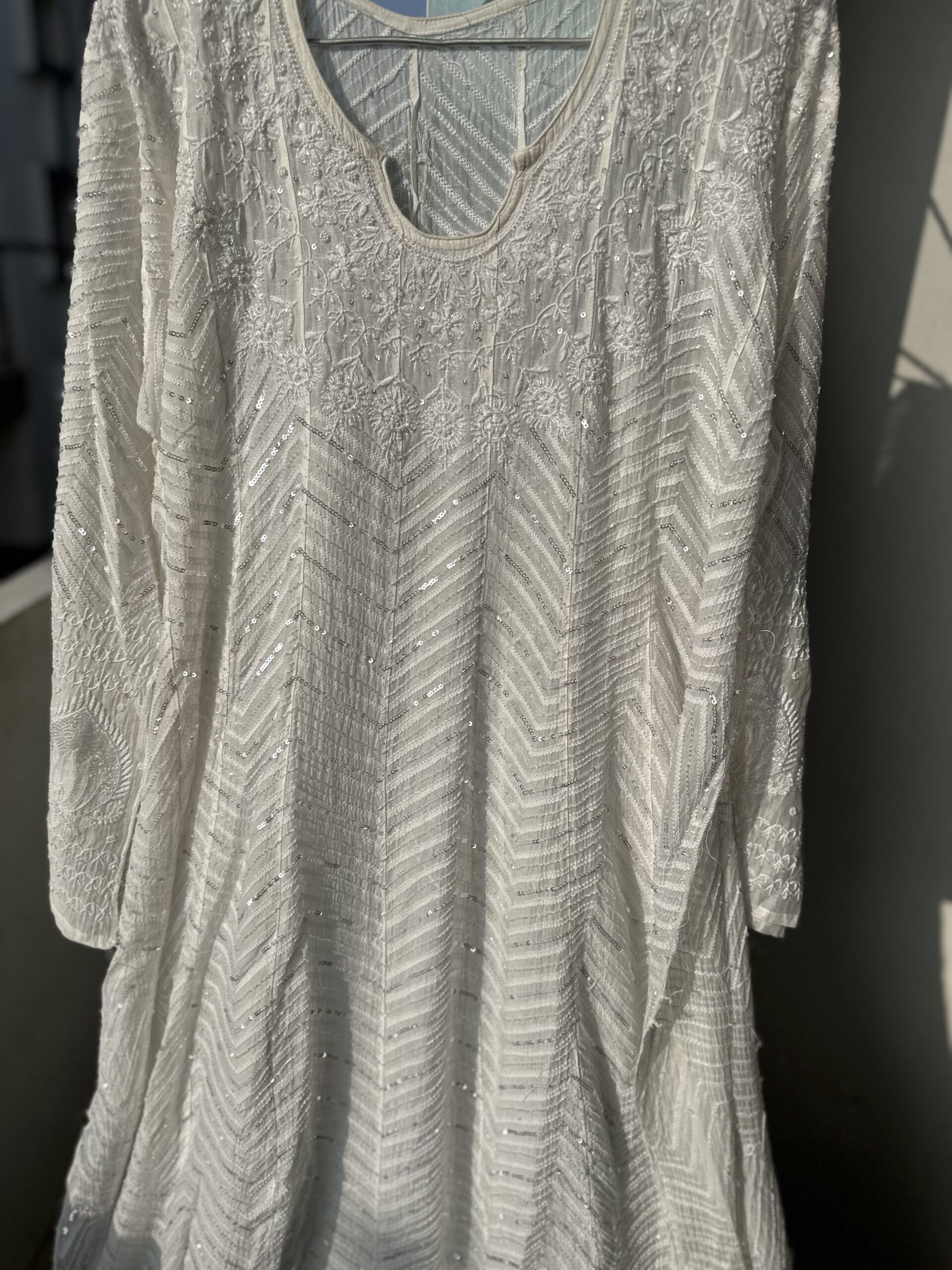 Be the first to review “Mul Chanderi Front And Back Anarkali and dupatta set with Fine Lucknowi Chikankari Beads And Pearls work”