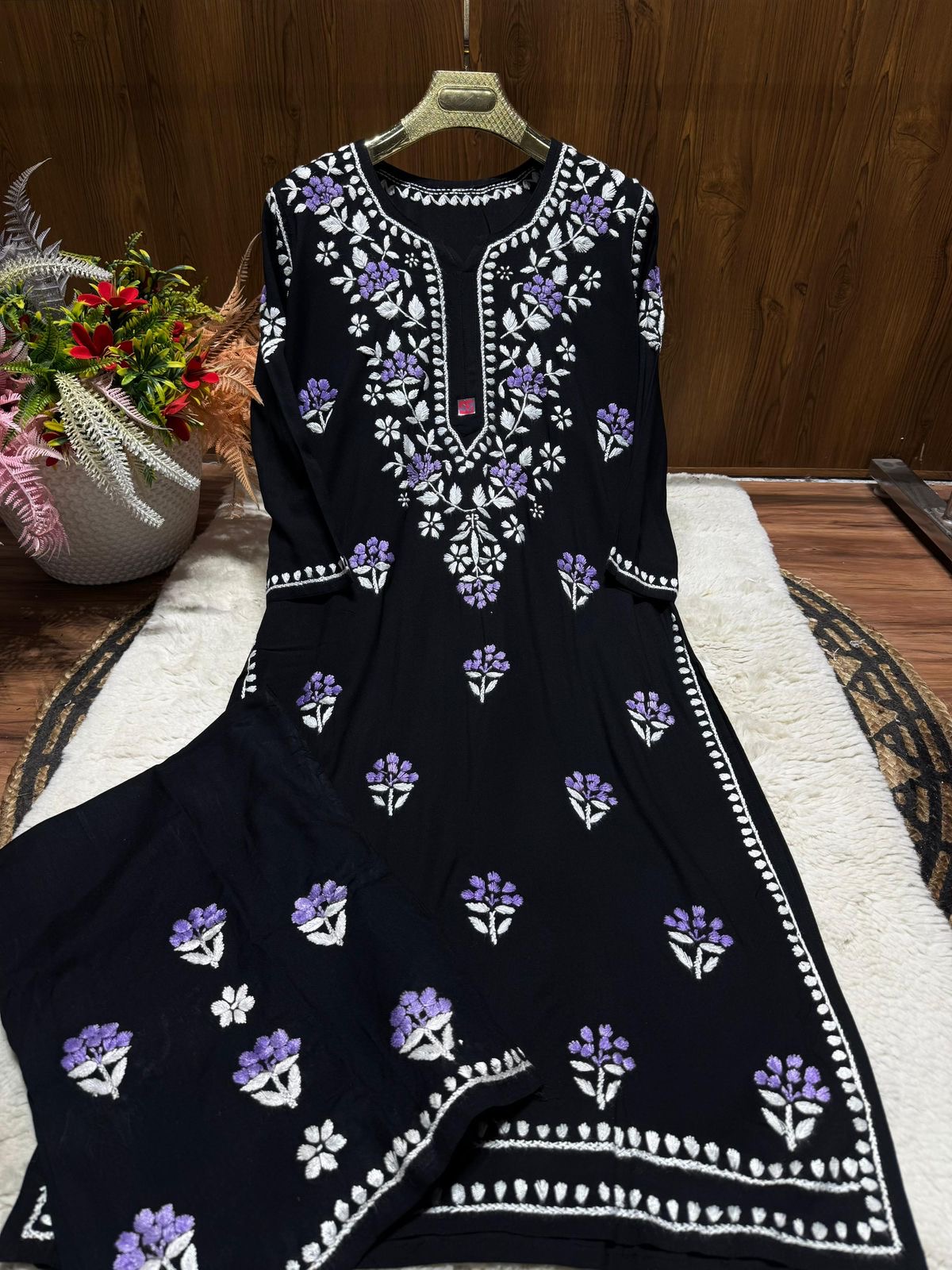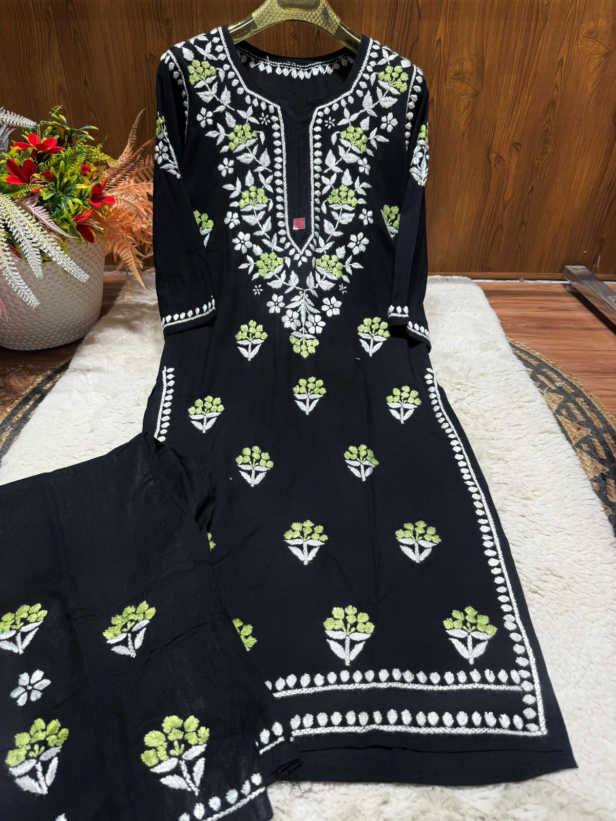 Rayon Chikankari Plazzo Set with lucknowi chikankari work