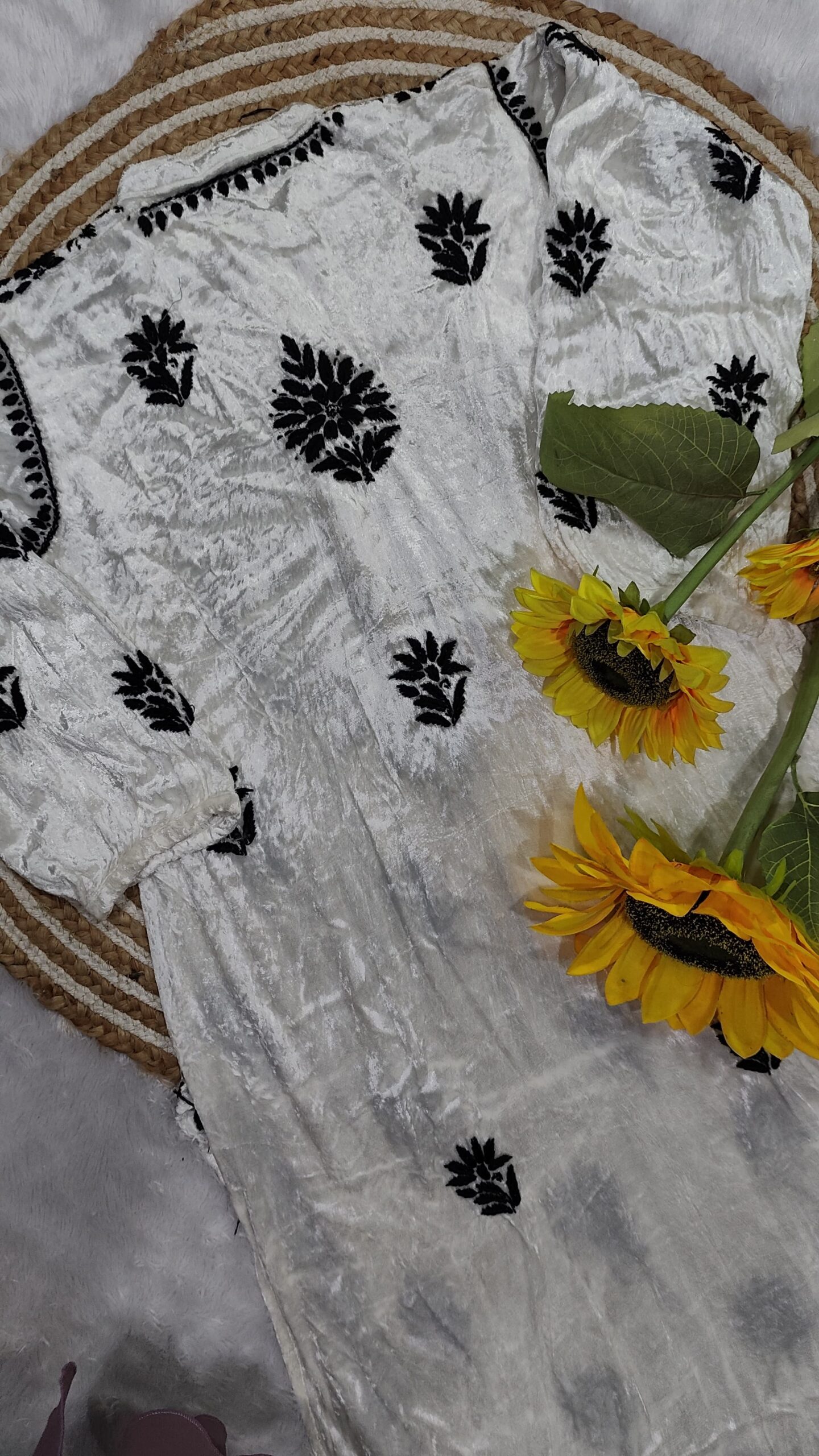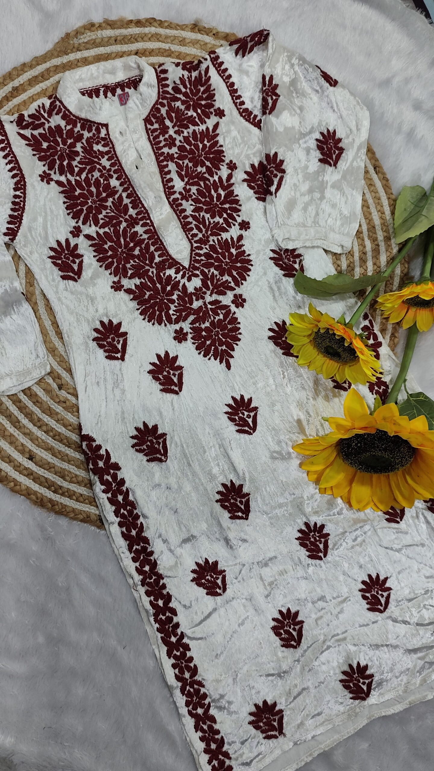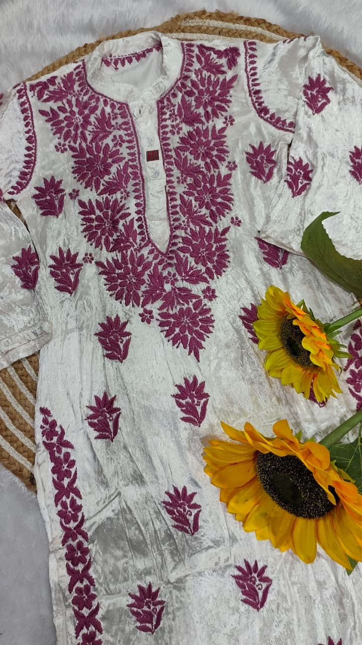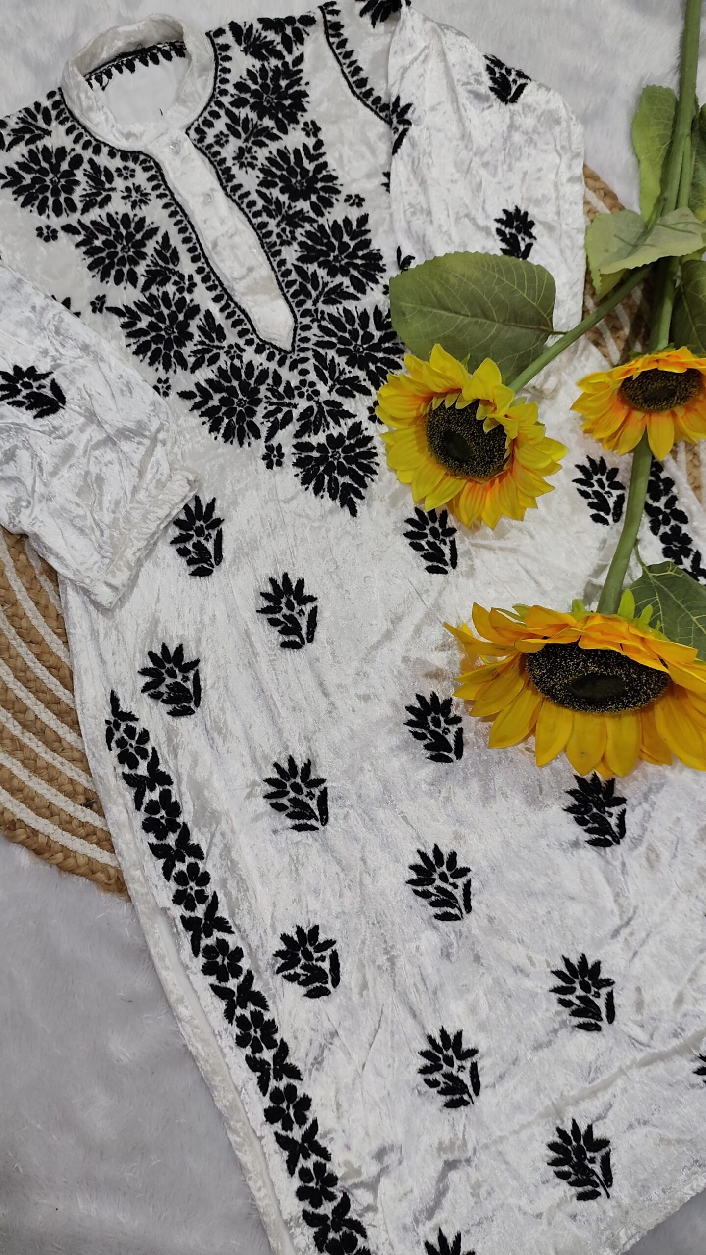 VelVet Chikankari Kurti with fine Lucknowi chikankari