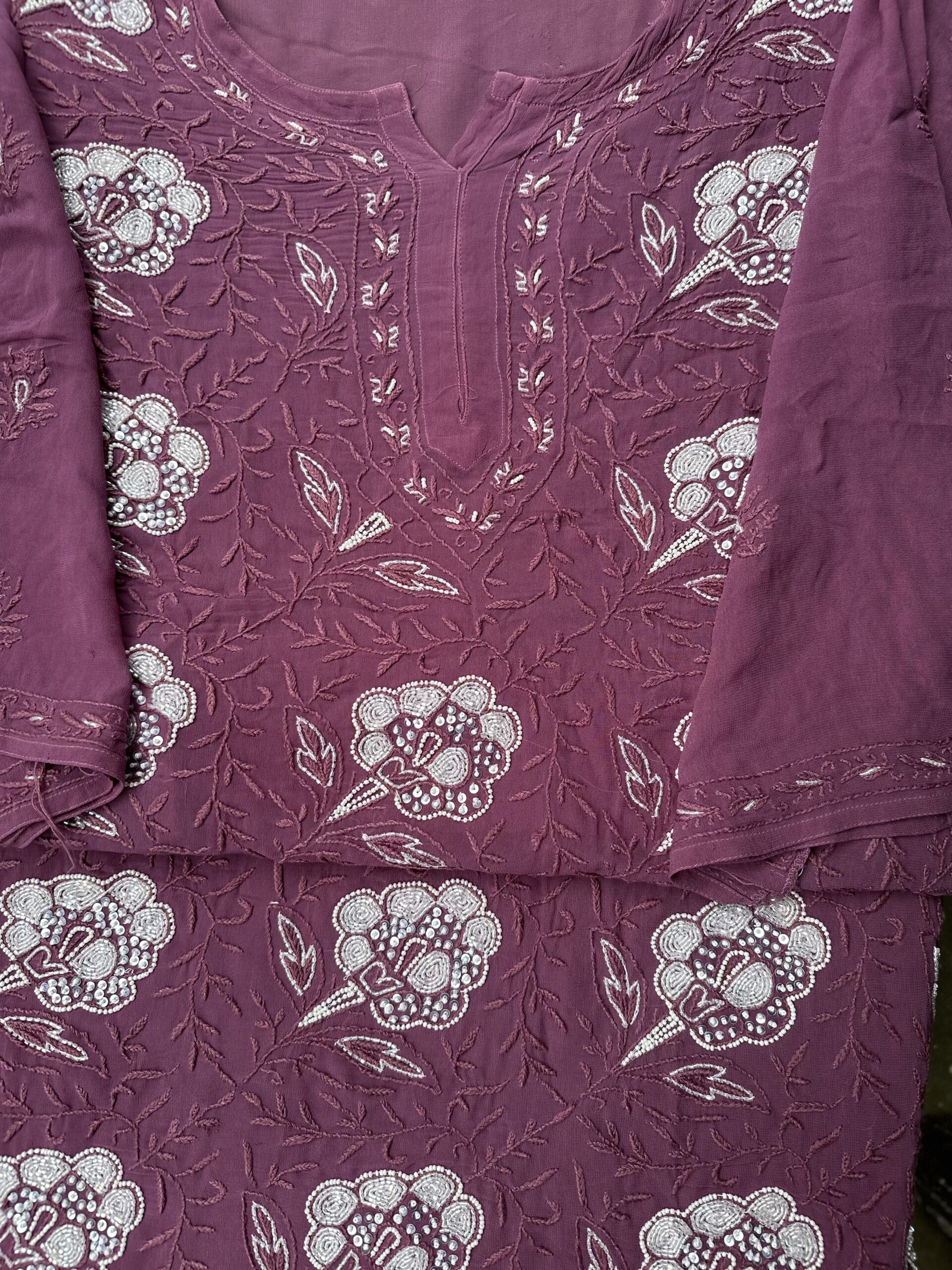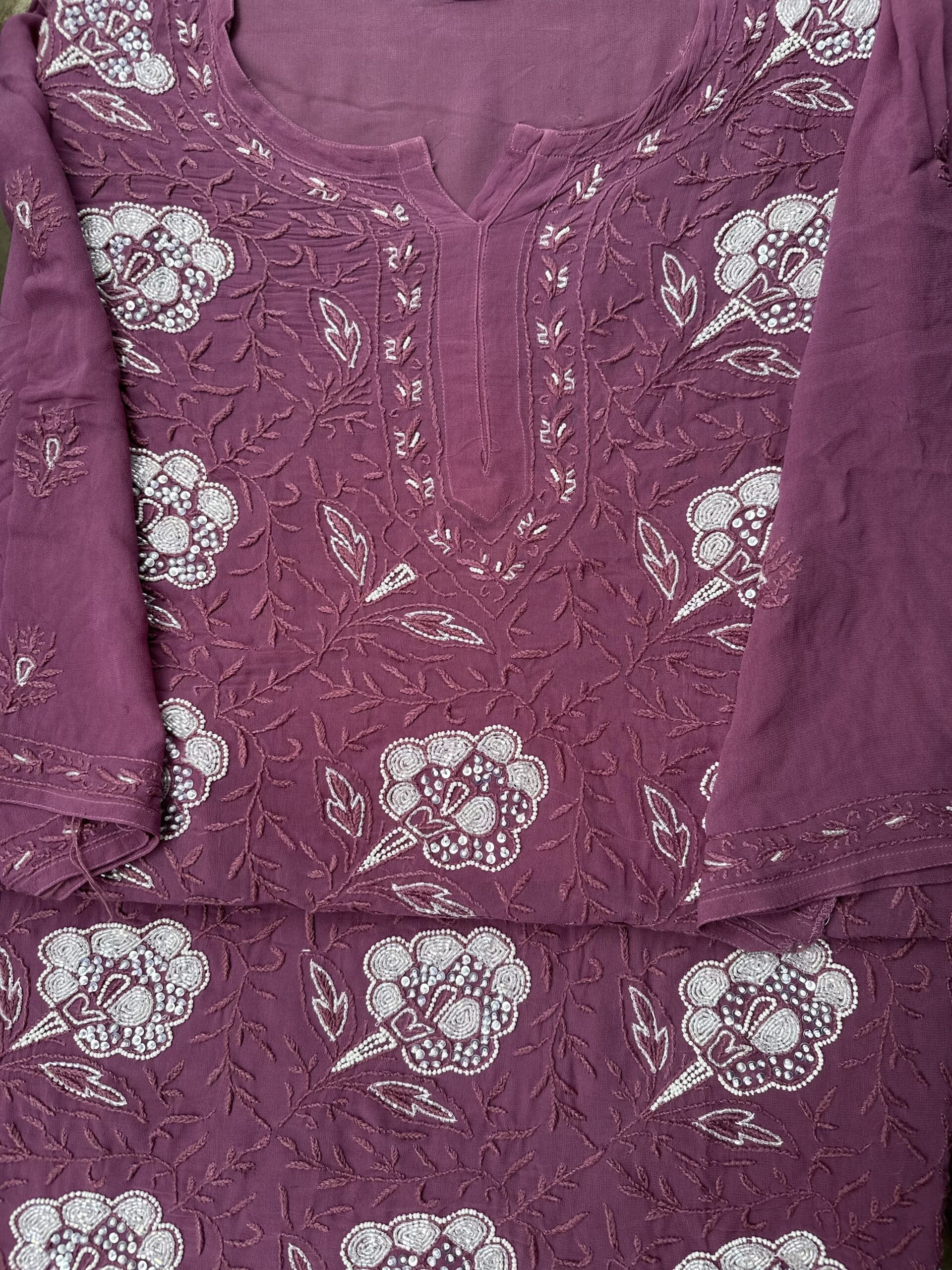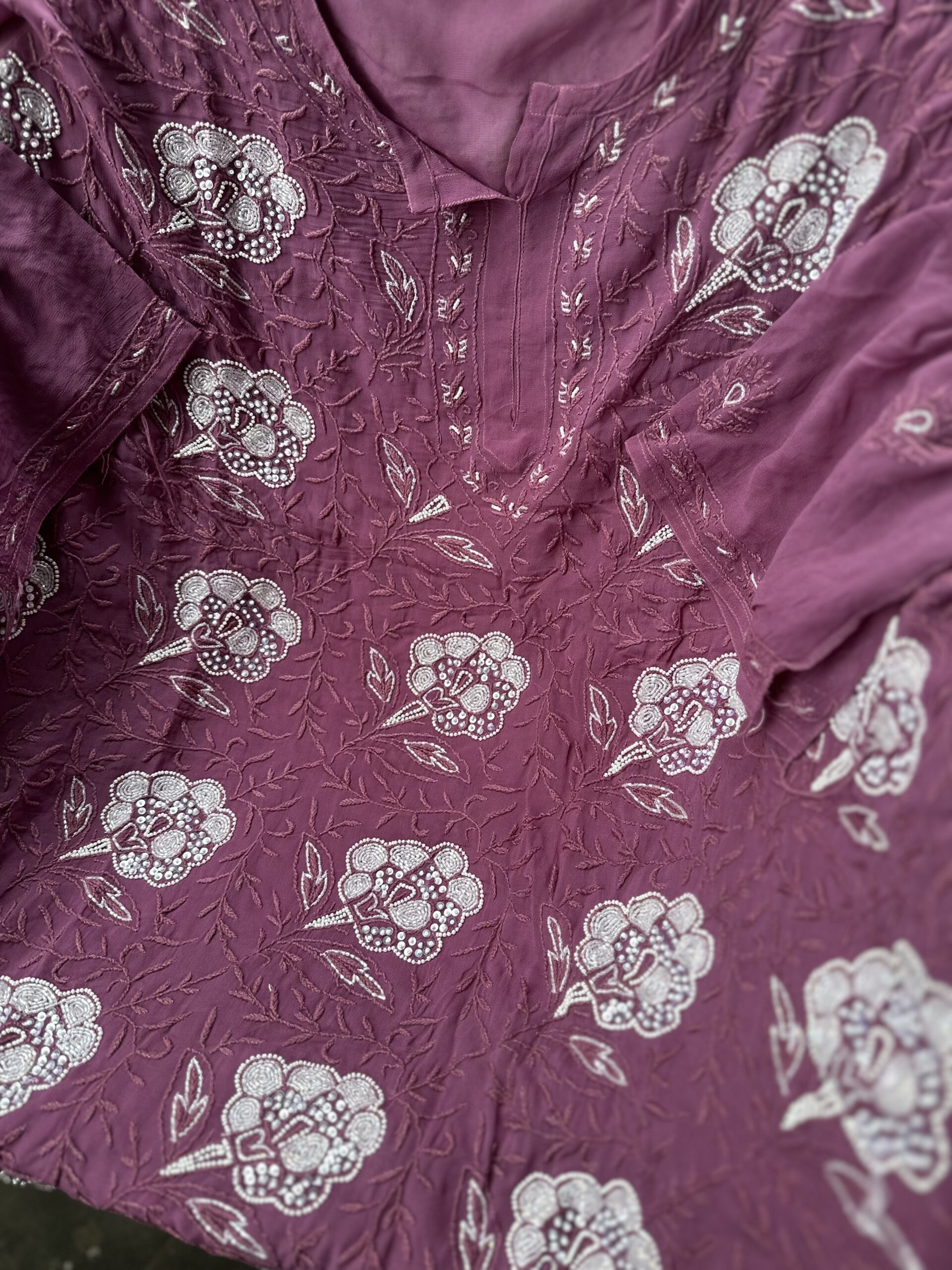 Viscose Chikankari Plazzo set with Fine Lucknowi Chikankari Beads and Pearls work