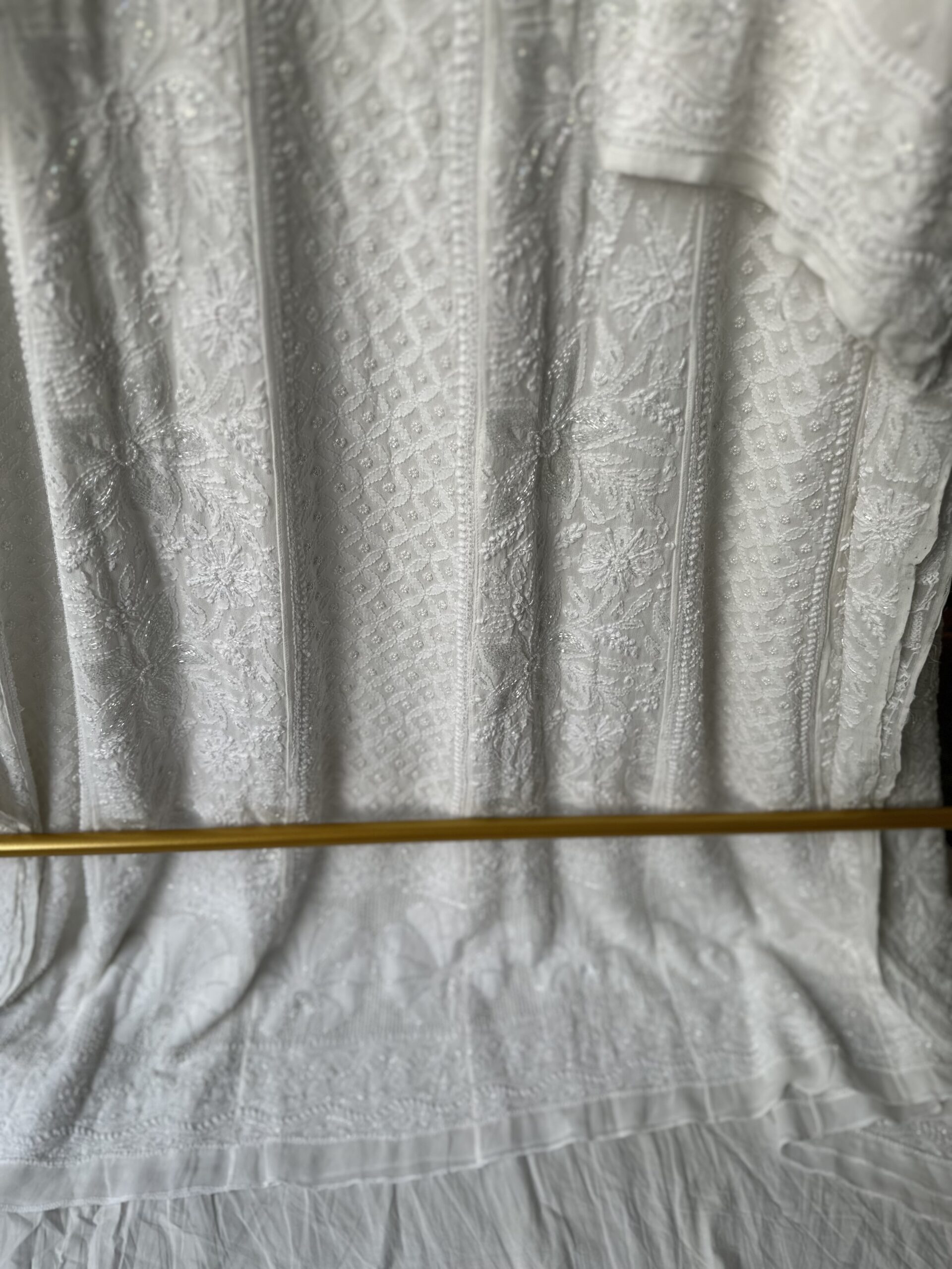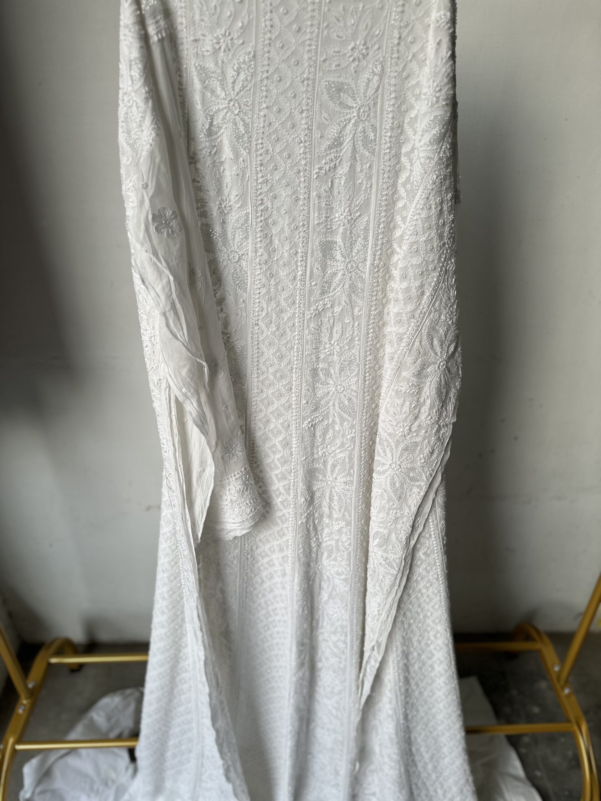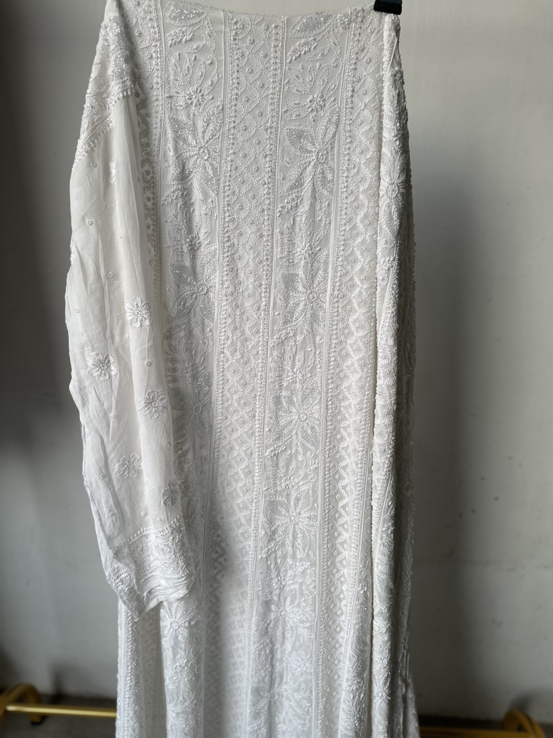 Viscose Georgette Front and back Anarkali and dupatta set with Fine Lucknowi Chikankari Beads And Pearls work